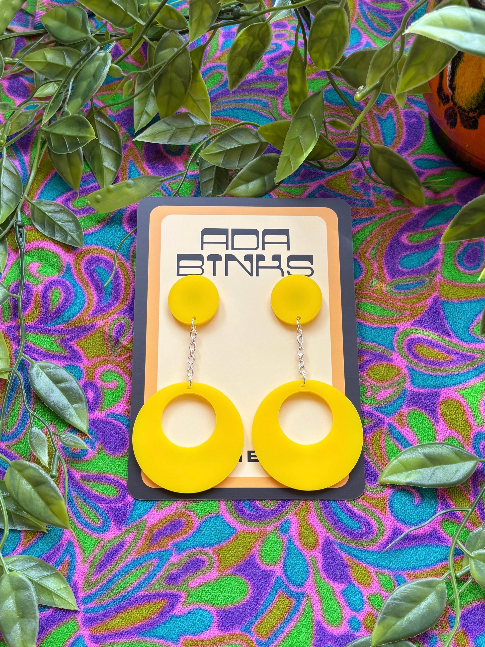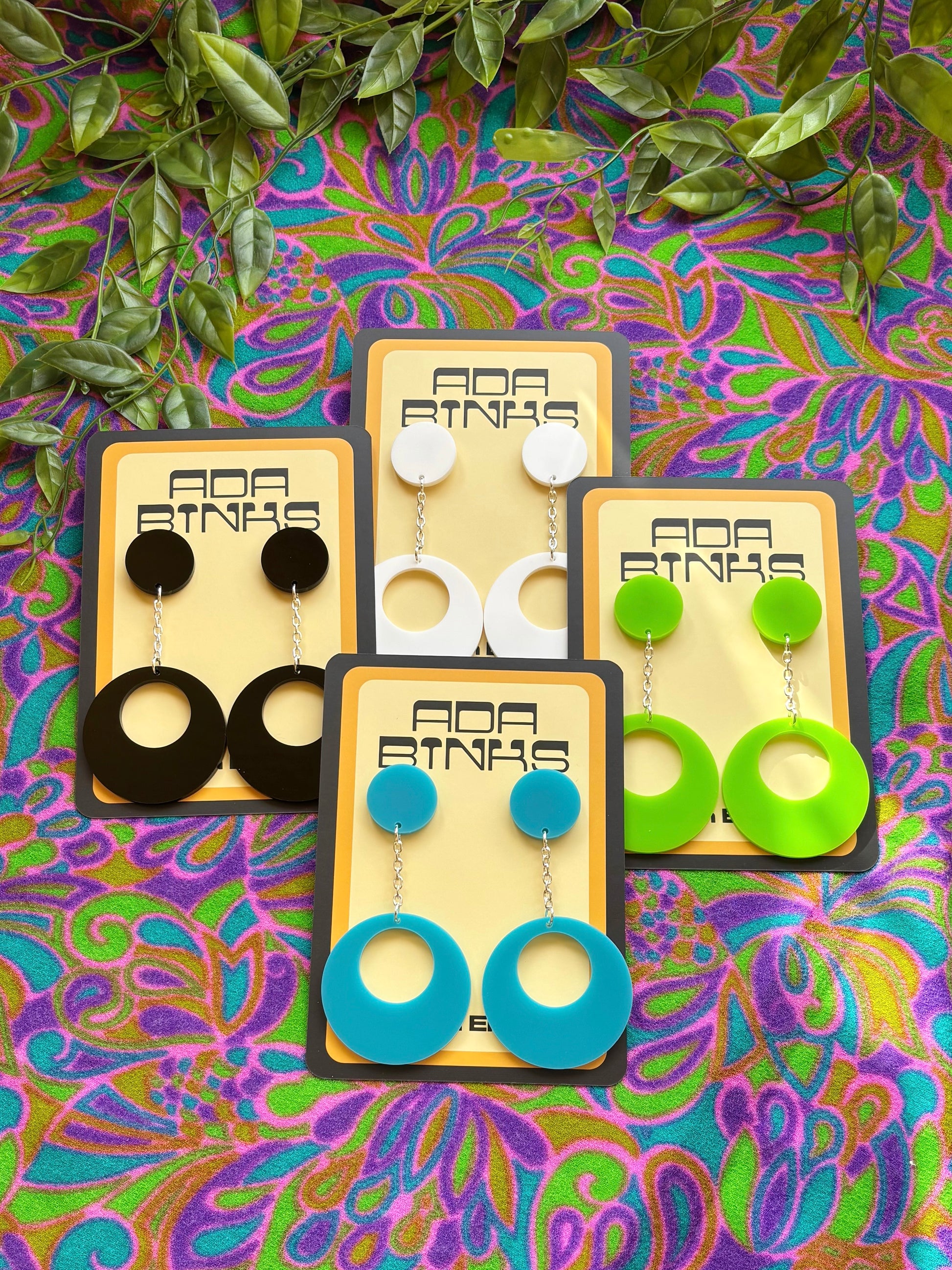 Laser cut acrylic earrings made in England. Inspired by classic sixties design, these definitely make a statement! Check out the rest of our Gogo design earrings!